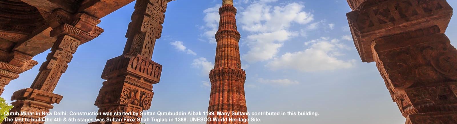 Qubub Uddin Aibak was born in Turkestan of ethnic Mamluk descent. This was a region where youth went out to neighboring countries and joined their armies as mercenaries. Often they were enslaved when the army they were fighting with lost. Qutubuddin was sold to the Qazi (Islamic judge) of Nishapur in Persia. There he became favorite of his master because of his skills of horseriding and archery among other warrior abilities. Qazi’s sons were jealous and they sold him after the Qazi’s death. Finally he ended up as slave of Sultan Muhammad of Ghur province of Afghanistan. He led Sultan of Ghur’s army in the 1st and 2nd battle of Tarain and was appointed Governor of Lalkot, the capital of the last Hindu Chauhan dynasty kingdom. When Muhammad of Ghur was assassinated, Qutubuddin bin Aibak declared himself sovereign monarch and started the construction of Qutub Jami Mosque (a.k.a. Quwwat ul Islam Mosque) and Qutub Minar. The construction of minaret did not complete in his lifetime and many later Islamic rulers of various successive dynasties left their mark on this monument, which is now 5 stories high and 73 meters or 240 feet tall. The mosque was constructed using architectural elements of 27 Hindu and Jain temples that were demolished to build it. Much of the decorative pillars and facades of walls in the mosque were used without alteration in the new mosque, only the Arabic verses from the Quran were added new, sculpted by Hindu artisans who did not know the Arabic language and curved the endings of letters as they did with Sanskrit language carvings. Qutub Minar is a UNESCO World Heritage Site.